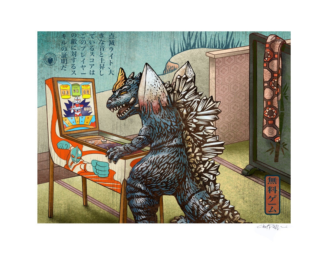 Space Godzilla Pinball 11 X 14 Signed Print Space Godzilla Etsy De